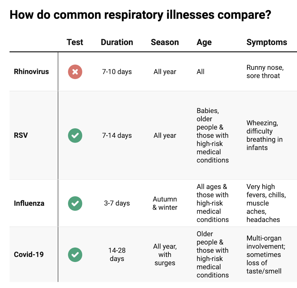If you’re concerned about severe symptoms of COVID, RSV or influenza, consult your doctor or call 000 in an emergency.